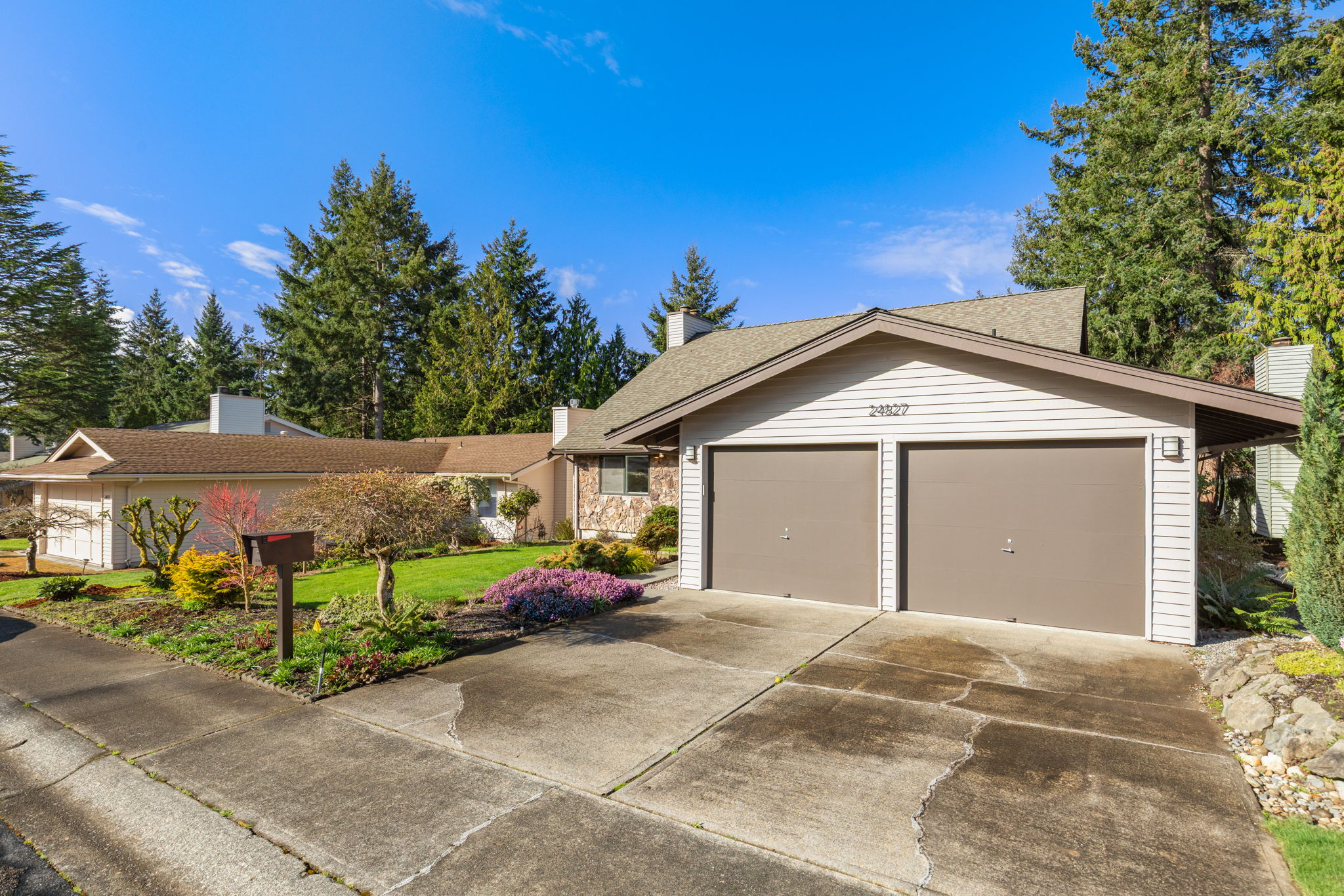 This is the one you've been waiting for! FULLY REMODELED, move-in ready rare 3-bedroom floor plan in Huntington Park, Des Moines' premier 55+ community! Grand double-door entrance greets you as you step inside to find a bright, open layout w/ LVP floors, Port Package windows adorned by high-end window treatments, two wood-burning fireplaces & living spaces that are cozy yet spacious. Host gatherings of any size in the dining area that flows easily into the gorgeously updated chef's kitchen, complete w/ stainless appliances, quartz counters, bar seating & a breakfast nook. Huge slider doors open to an expansive deck surrounded by lush mature landscaping, seamlessly blending indoor-outdoor living - perfect for BBQs, leisurely summer evenings, or dining al fresco. 2 generous bedrooms on the main floor share a stylishly updated full bath, while the primary enjoys perfect privacy upstairs, double closets & a spa-like ensuite bath with beautifully tiled walk-in shower. A large upstairs family/TV/bonus room offers endless versatility for all your hobbies & needs while a newer roof & impressive amounts of storage space (HUGE walk-in attic + large crawl space) add value & peace of mind. Large attached 2-car garage, and driveway space for at least 4 cars. Come be a part of this fantastic neighborhood w/ a well-run HOA & low dues, outdoor pool/hot tub, 2+ miles of trails, RV parking, Clubhouse & great community events. Quiet & peaceful, yet just minutes to everything. Preinspected!